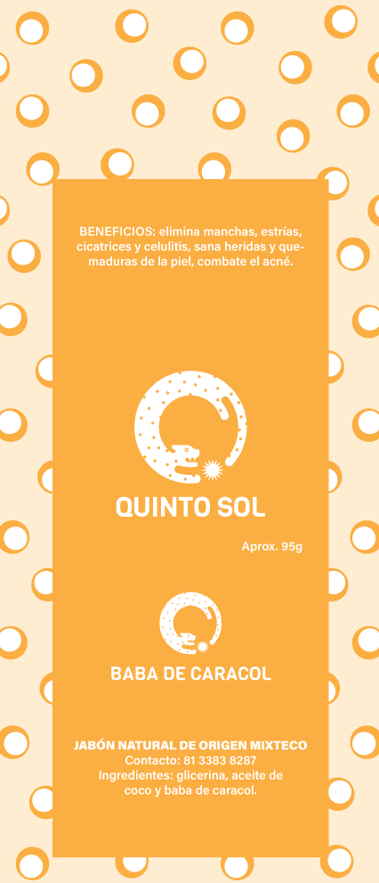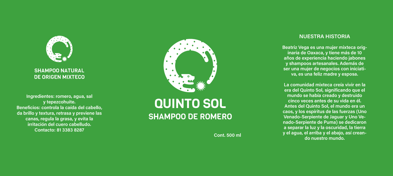 Branding y naming para la marca de jabones artesanales indígenas Quinto Sol. La marca hace referencia a las raíces mixtecas de la dueña y emprendedora Beatriz Vega. El proyecto incluyó el diseño de un sistema de 33 íconos, logotipo, empaques y etiquetas.