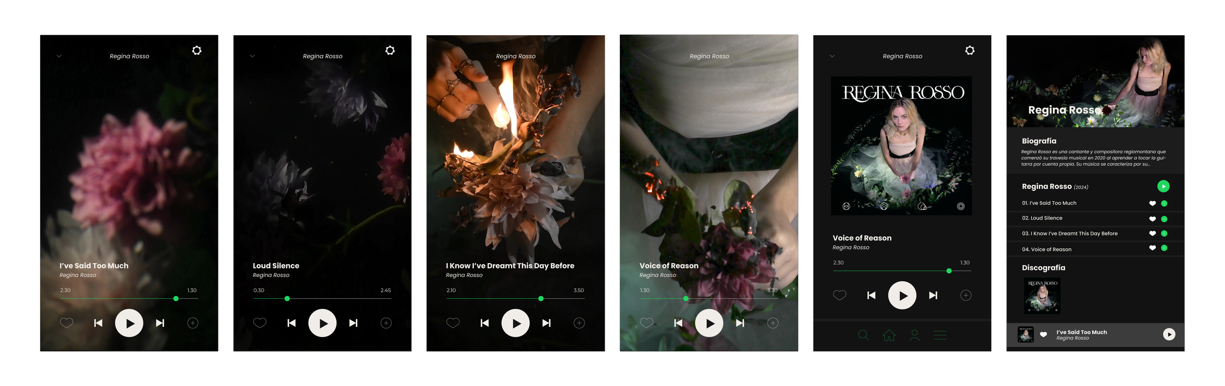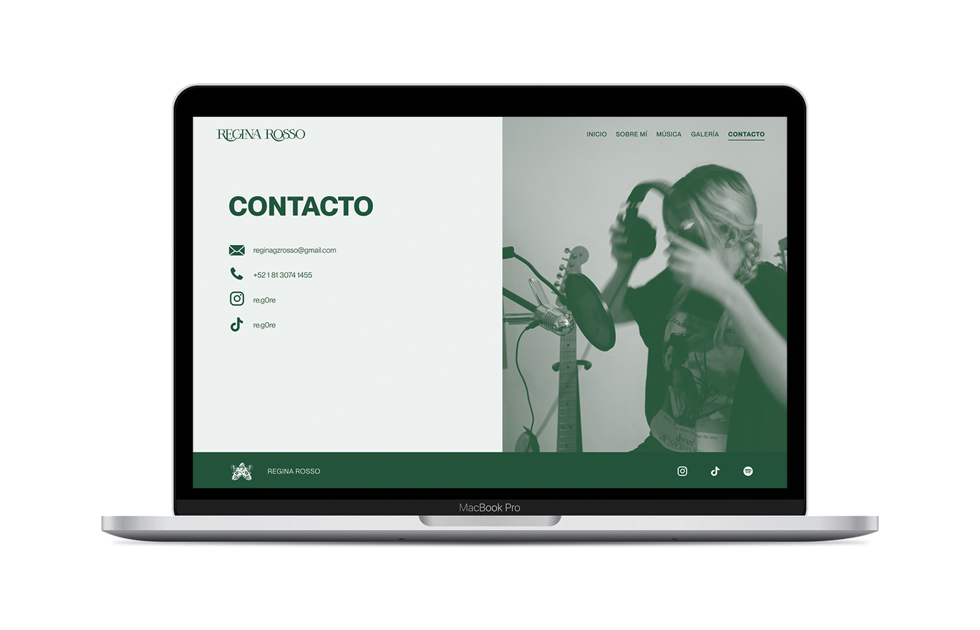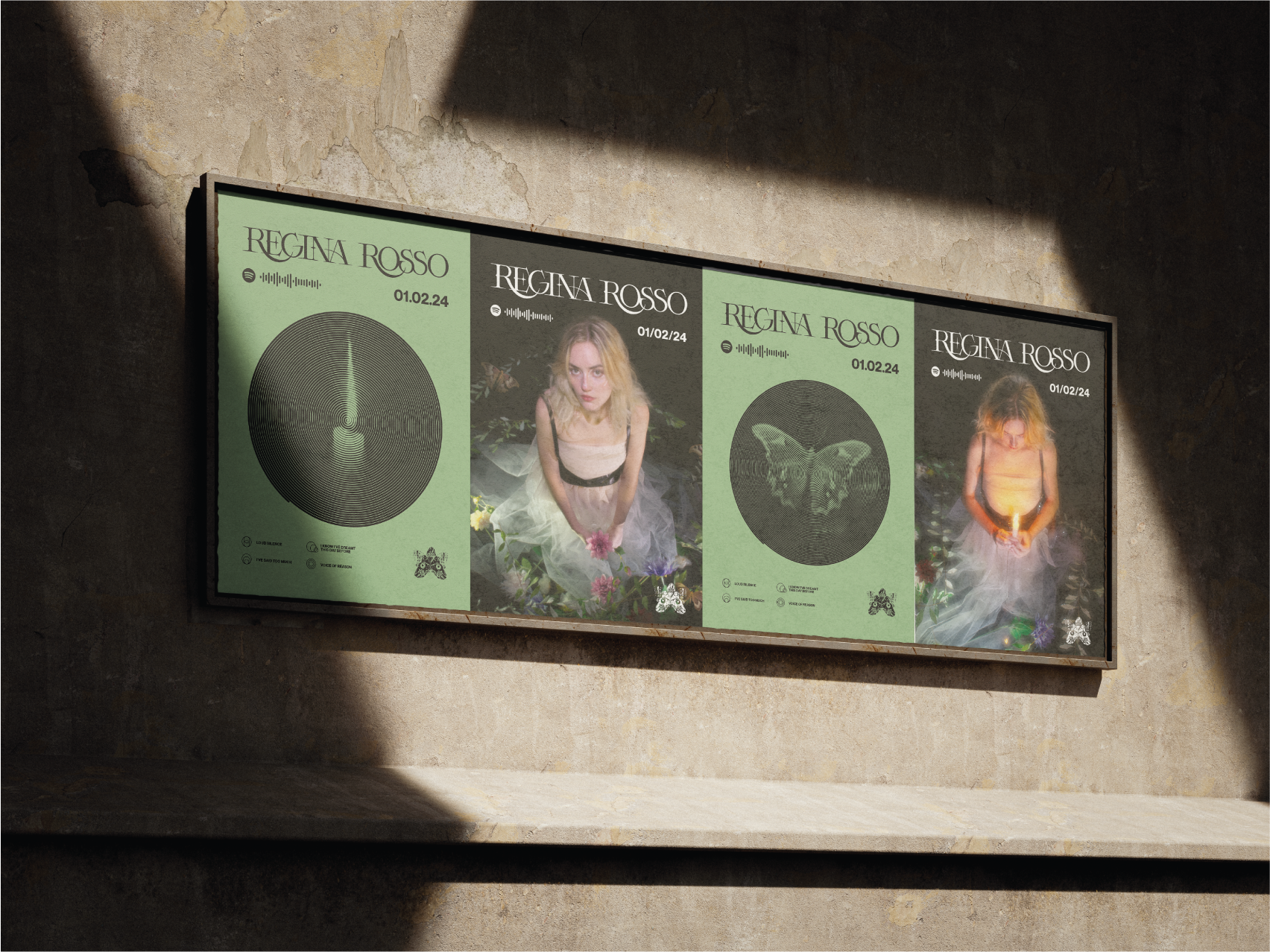 Regina Rosso es una artista musical indie emergente que está a punto de lanzar su álbum debut. Se creó una identidad visual para capturar su esencia, retratándola como una bruja moderna atormentada por su doppelgänger, utilizando un sutil terror psicológico para destacar en una industria saturada. La identidad incluye un logotipo personalizado, sesiones fotográficas e iconografía, y se extiende a puntos de contacto para fans, promotores y lugares de presentaciones. Se desarrolló un EP físico y digital, un press kit digital y una estrategia promocional que combina redes sociales y merchandising para apoyar su crecimiento.