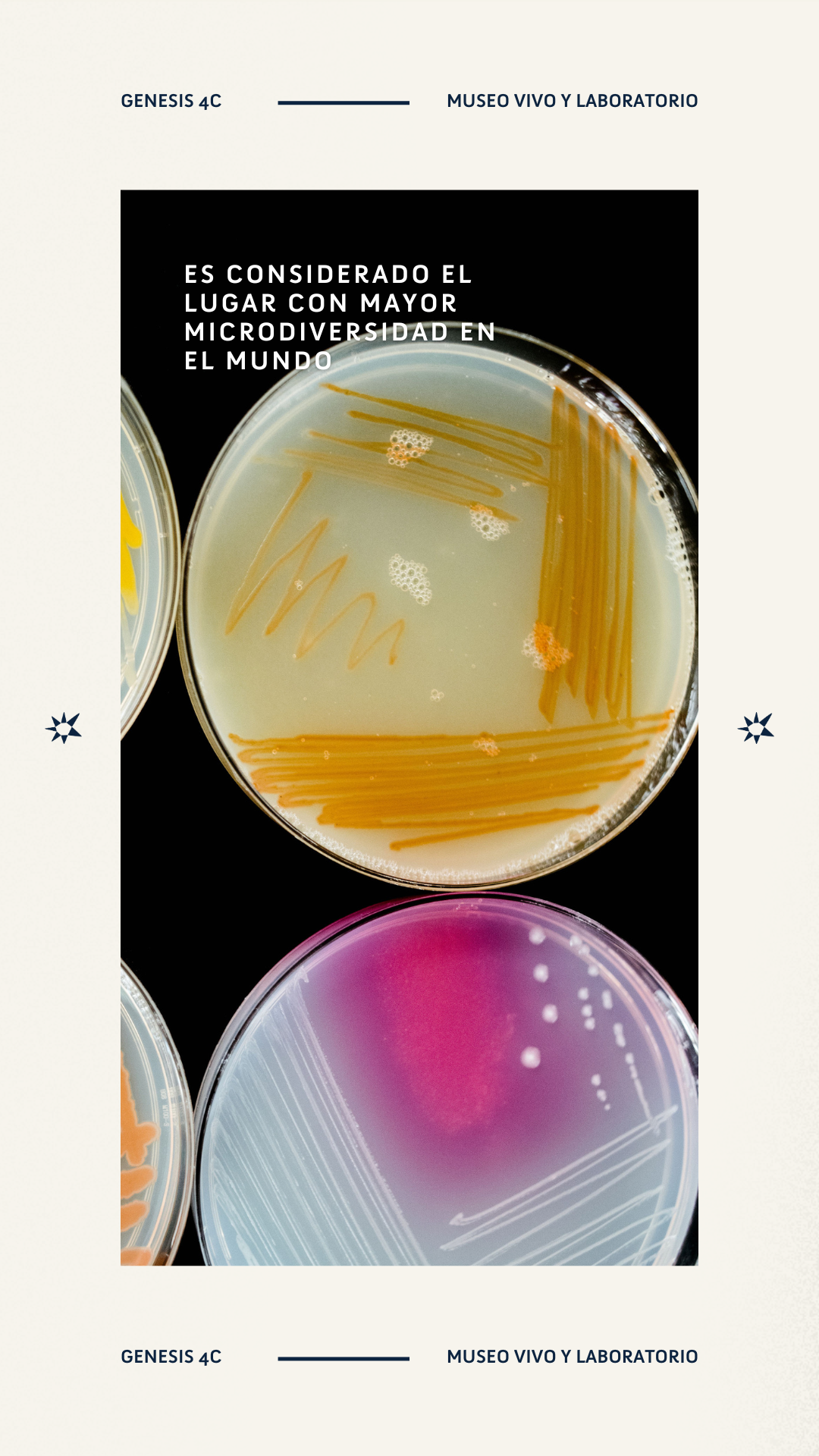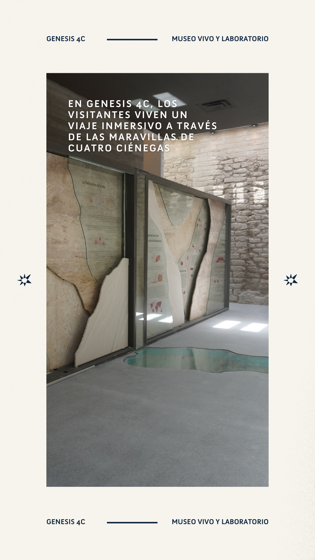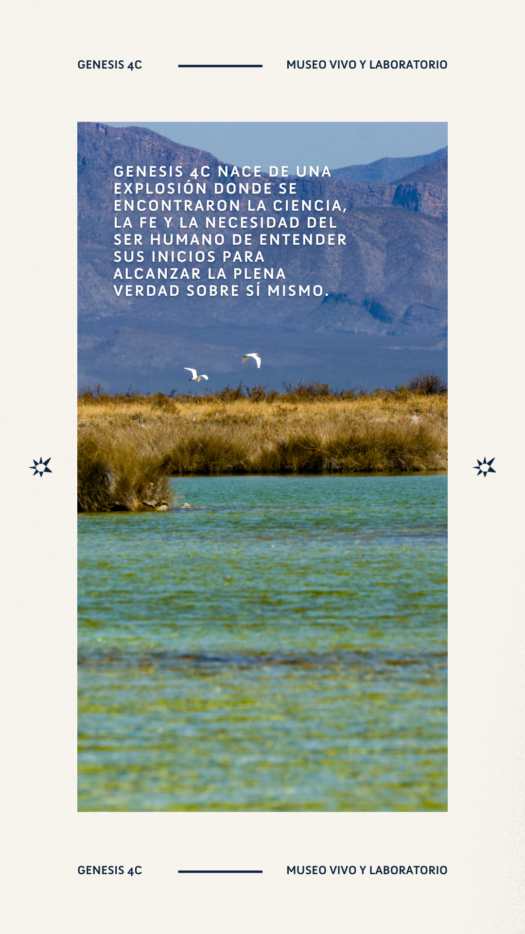 Genesis is a brand born to explore and communicate the extraordinary micro-diversity of Cuatro Ciénegas, a small town in the middle of the desert that holds the title of the most micro-diverse place on Earth. Unique microorganisms and bacteria, found nowhere else, thrive in this environment. To harness this scientific treasure, Genesis operates an on-site lab dedicated to researching these microorganisms and developing products based on their properties. Additionally, Genesis features an immersive and interactive museum designed to engage the local community in science, believing that knowledge and appreciation form the foundation for conservation.